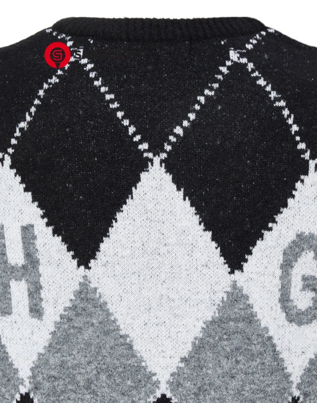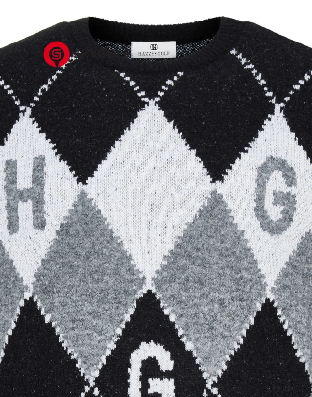 Áo Hazzys golf len tròn họa tiết Argyle mềm màu đen
