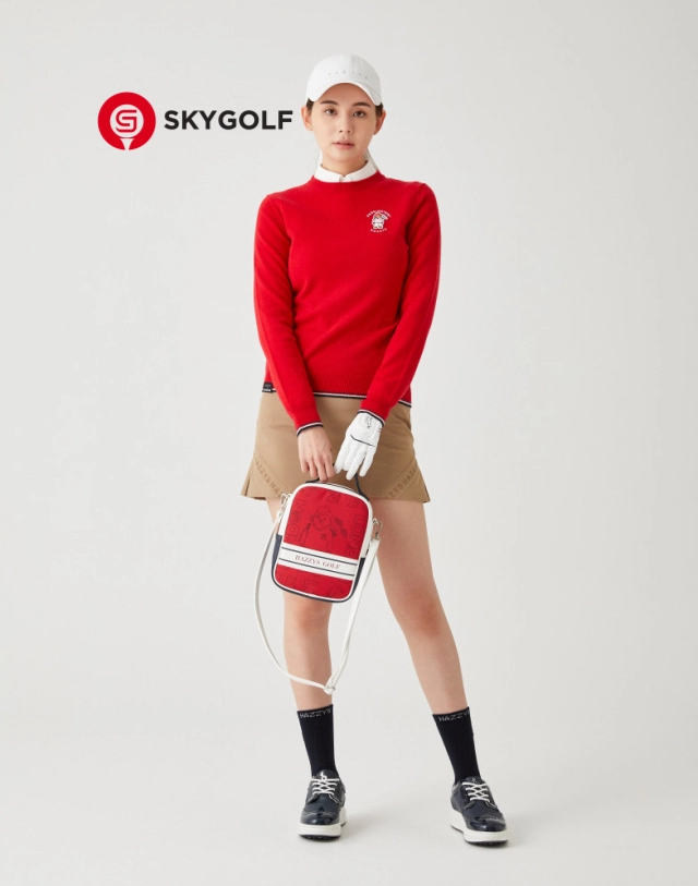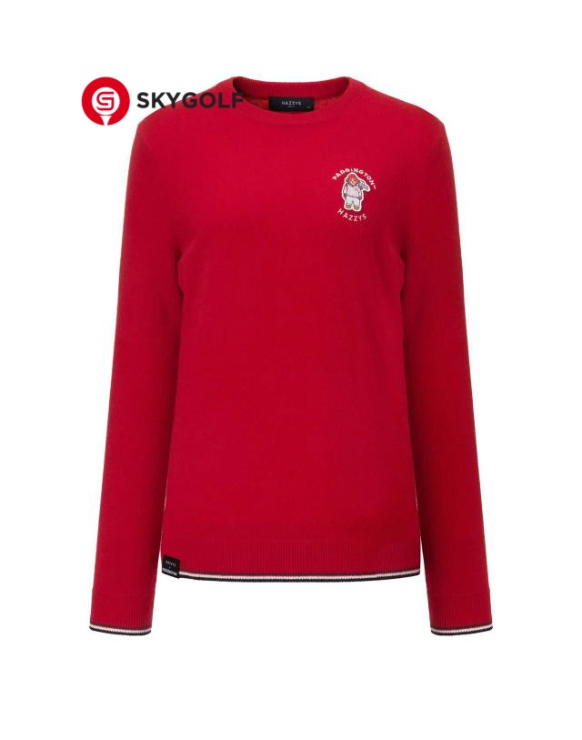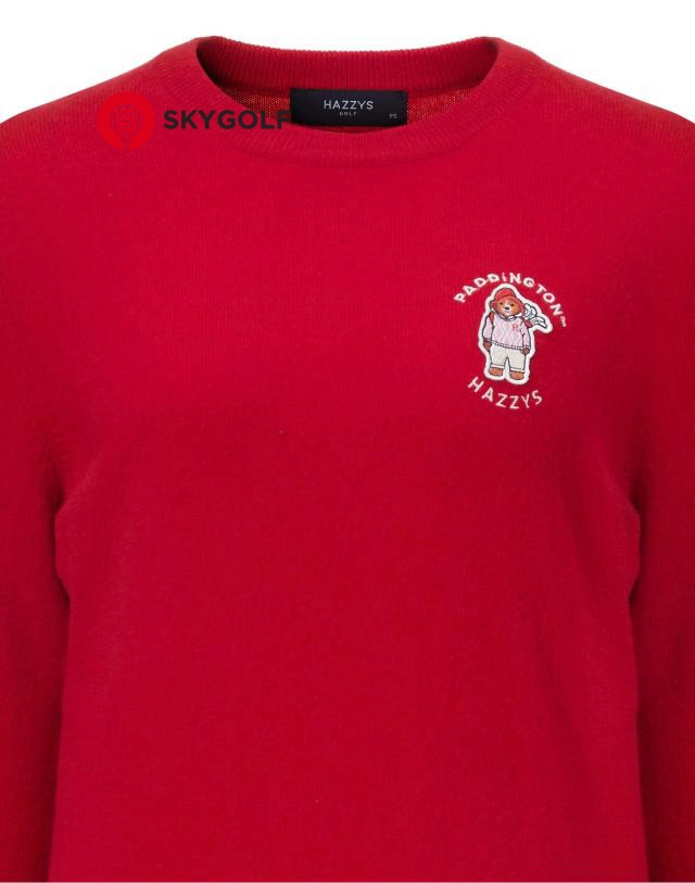 Áo len Hazzys cổ tròn thêu Paddington màu đỏ