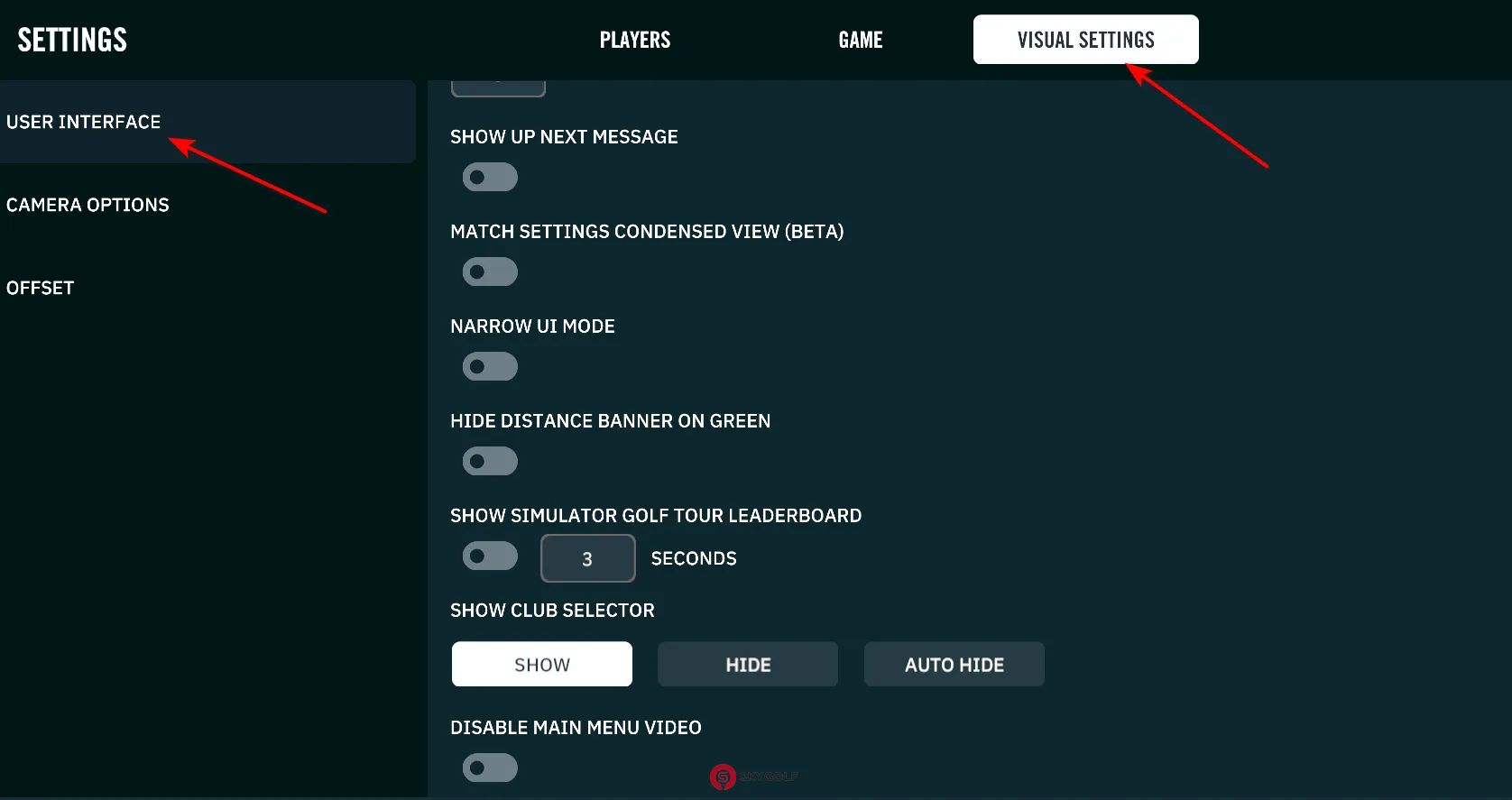 Chức năng: Điều chỉnh độ lệch góc nhìn ngang khi người chơi thuận tay trái thực hiện cú gạt bóng (chỉ có hiệu lực nếu PUTTING SCREEN OFFSET được bật).