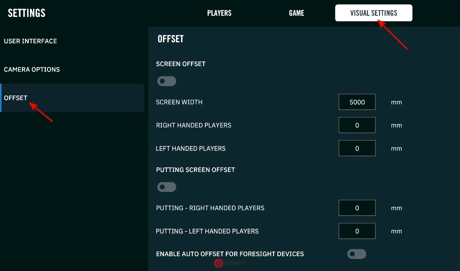 5. PUTTING SCREEN OFFSET (Độ Lệch Màn Hình Khi Gạt Bóng)