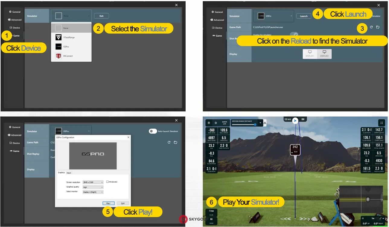 Ở phần Game bạn có thể tùy chọn được phần mềm chơi ưu thích của mình, nếu như bạn luyện tập thông thường có thể chọn Vtrackrange, Vtrack có kết nối với GS Pro, E6 hai phần mềm này bạn cần mất thêm chi phí mua đầu kết nối. Hãy ấn chế độ khởi động cùng hệ thống nếu như bạn dùng thường xuyên chỉ với một phần mềm. Chế độ quay lại mặt gậy cũng nên được kích hoạt đây là một chế độ khiến bạn sửa được rất nhiều lỗi trong cú đánh của mình.